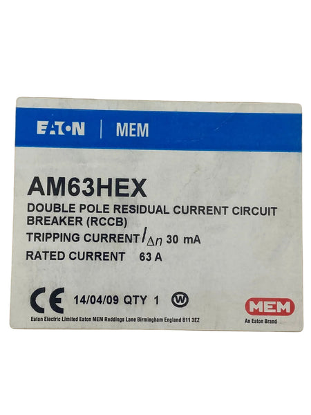 EATON AM63HEX Residual Current Circuit Breaker 2 Pole 63A
