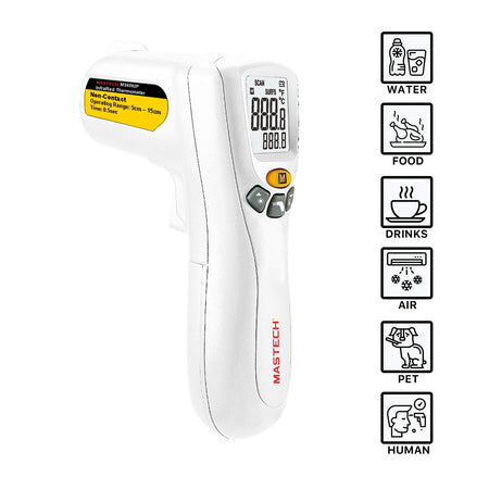 Mastech MS6592P Digital Infrared Thermometer with 2 Functions, Non-Contact Temperature Measurement (between 32o-42o) and Surface Temperature Measurement (0oC-100oC) 143 X 99 X 47 mm