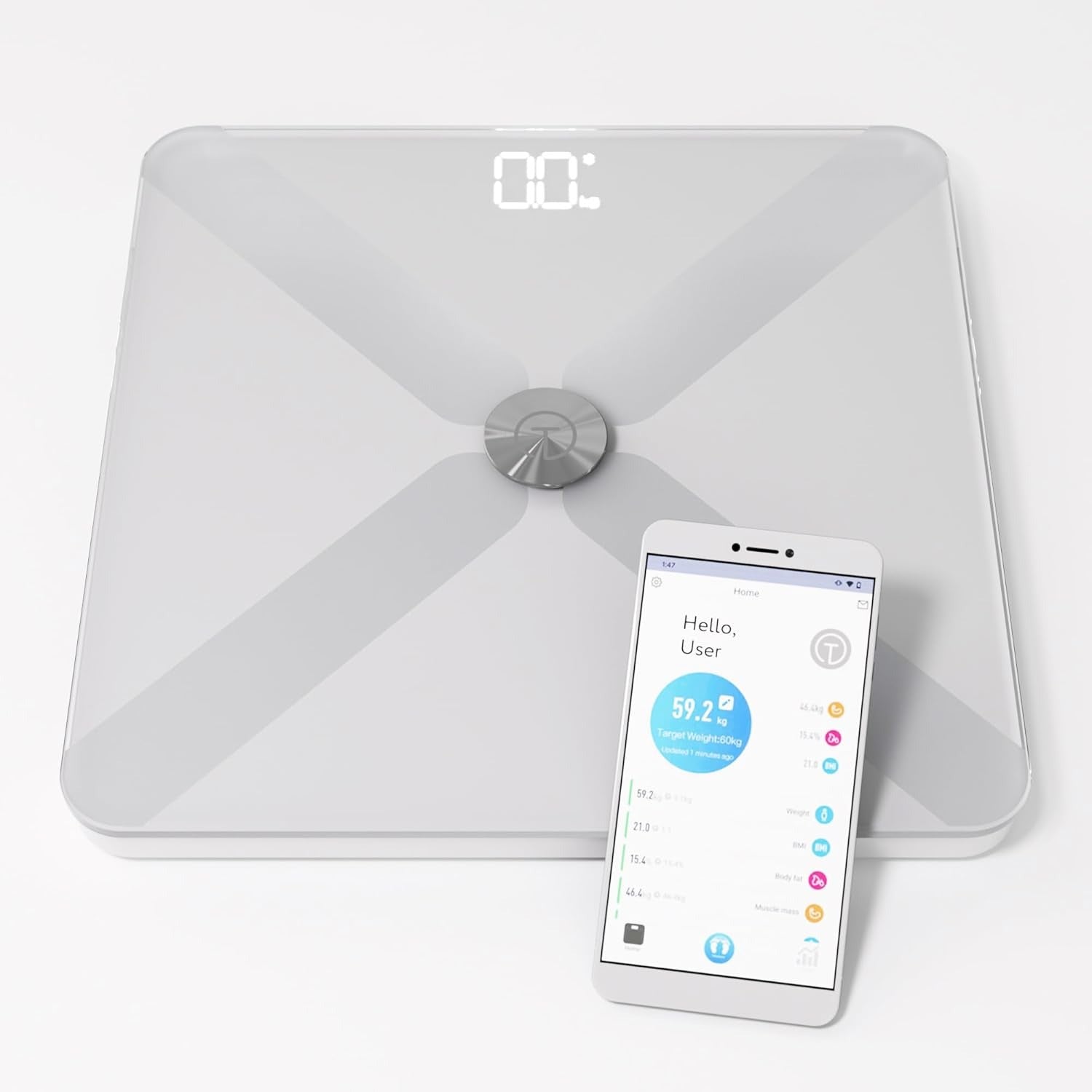 Track your journey to a healthier you with this sleek, easy-to-use smart scale!